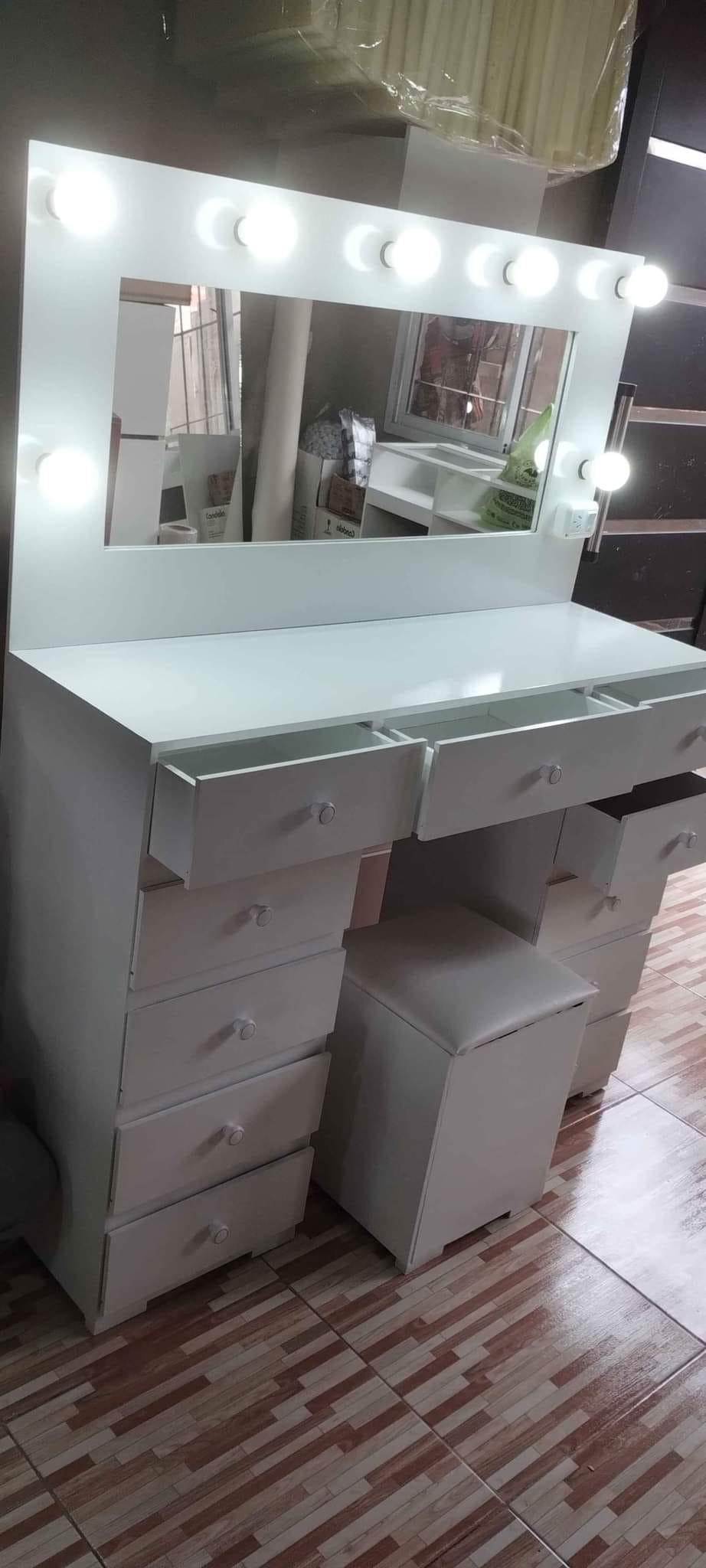 Añade un toque de glamour a tu espacio con nuestro tocador en madera tipo Hollywood. Diseñado para ofrecer una experiencia de belleza de lujo, este tocador cuenta con un acabado en madera elegante y un diseño inspirado en el estilo icónico de Hollywood.
