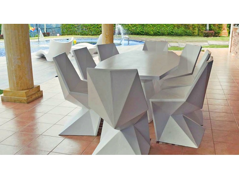 Fabricado con resina de poliéster. Apto para exterior e interior. Disponible en varios acabados. 100% reciclable.