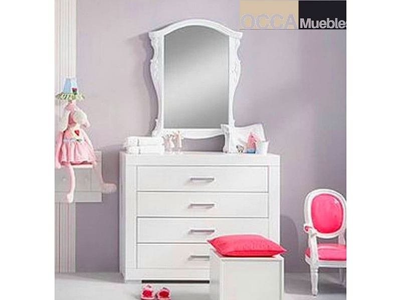 Tocador infantil color blanco con cuatro cajones para dormitorio.