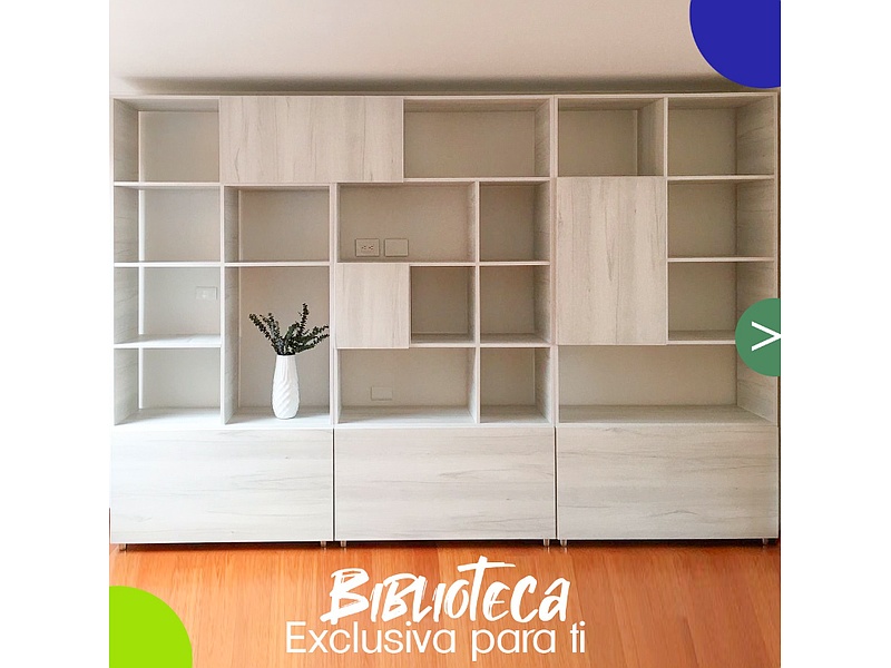 Nuestra biblioteca de piso a techo es más que un mueble, es un espacio donde tus libros, recuerdos y decoraciones cobran vida. Con un diseño imponente y a medida, cada detalle está pensado para maximizar el estilo y la funcionalidad de tu hogar. Transforma tu sala, oficina o estudio con una pieza que organiza y decora al mismo tiempo. ¡Déjate inspirar por un diseño que lo tiene todo!