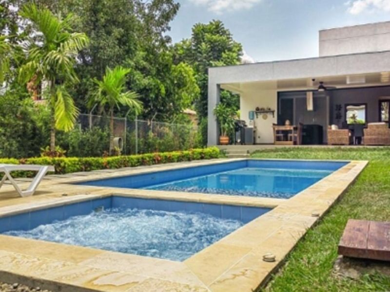 Casa Campestre en Jamundí Colombia, arquitectura moderna de espacios amplios , fresca e iluminada . En conjunto cerrado donde se goza de gran extensión de árboles y zonas verdes conectadas con la naturaleza. Vivir en este lugar es una sensación de alegría , armonía y tranquilidad. el conjunto cuenta con zonas comunes: cancha de fútbol, juegos , a 20 minutos de Cali. Lote 1.500 m2 Construidos 300 m2 4 habitaciones con baño cada una ( la habitación principal con dos vertieres , 2 baños ) , terraza , Sala cocina y comedor integradas tipo lof , Parqueadero, Depósito, baños social ,alcoba de servicio