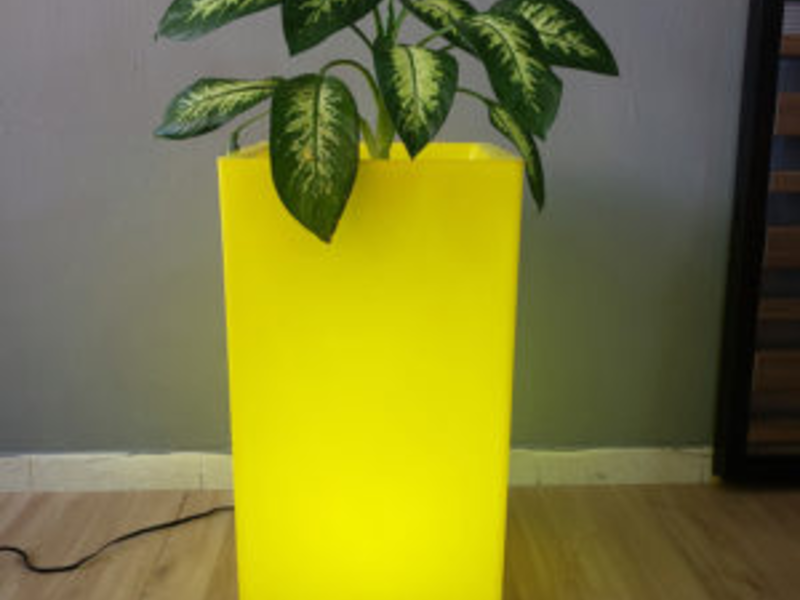 Matera con luz de forma cuadrada, alta; con acabado mate y liso. Estas materas son excelente para complementar y darle vida a ambientes de exterior o interior.