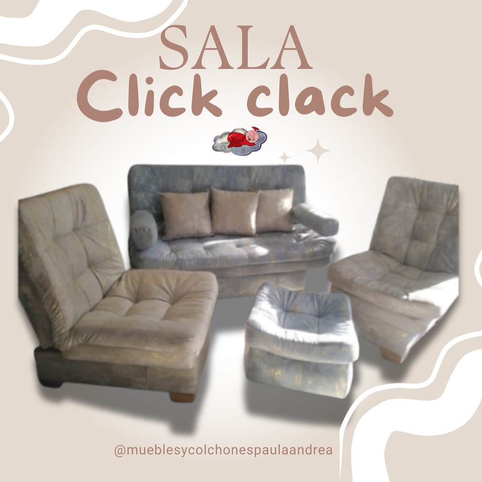 Diseñada para la comodidad y versatilidad, la Sala Click Clack ofrece un sofá que se transforma fácilmente en una cama. Con un mecanismo de clic-clac intuitivo y una tapicería moderna, es ideal para maximizar el espacio en salones y habitaciones multifuncionales. Perfecta para quienes buscan un sofá elegante que se adapte a diferentes necesidades y estilos de vida.