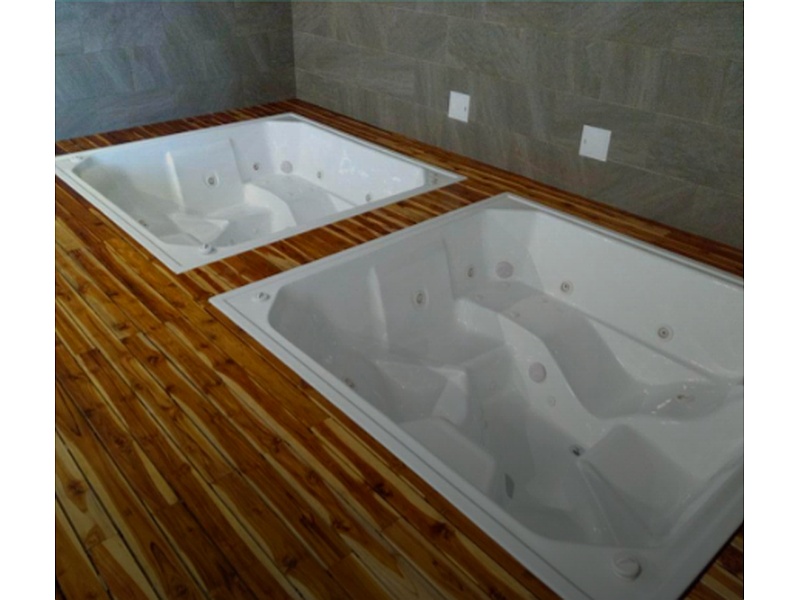 - La base cuadrada se construye con vigas de soporte robustas y travesaños para distribuir el peso del jacuzzi de manera uniforme y garantizar la estabilidad.