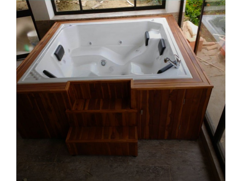 Un jacuzzi grande con espaldar para 4 personas es una lujosa instalación de hidromasaje diseñada para proporcionar una experiencia de relajación y bienestar. Aquí tienes una descripción detallada de sus características: