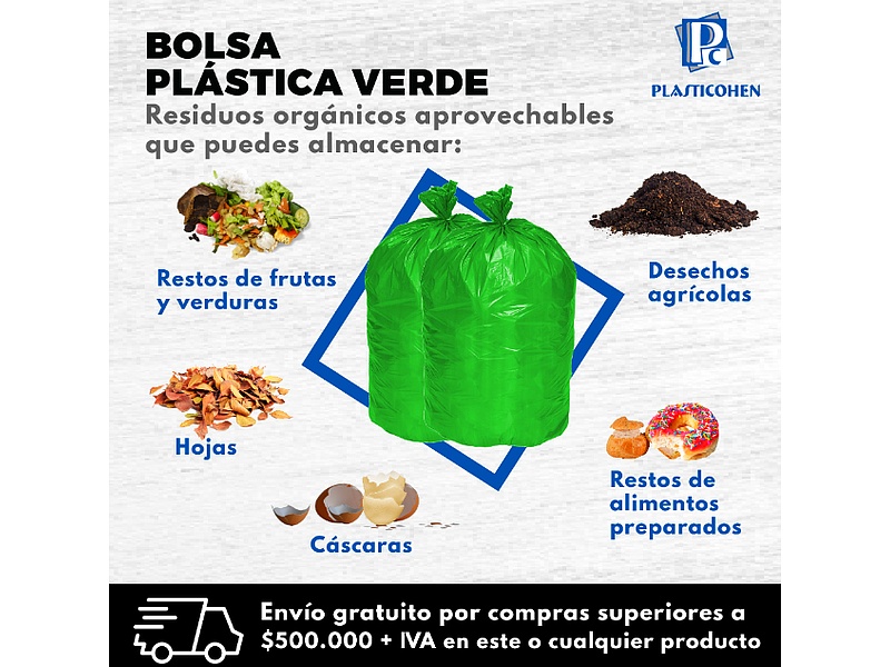 Este tipo de bolsa la puedes adquirir en presentación canequera, mediana, jumbo y extra jumbo, ajustándose a las necesidades de tu empresa, restaurante, cafetería, hogar o conjunto residencial. Su fabricación es 100% con material recuperado y reciclado.