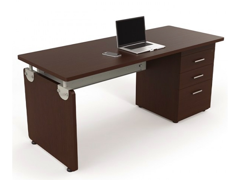 Escritorio amplio con un diseño elegante y profesional, ideal para oficinas o espacios de trabajo en casa. Incluye cajones y estantes para mantener documentos y suministros organizados.