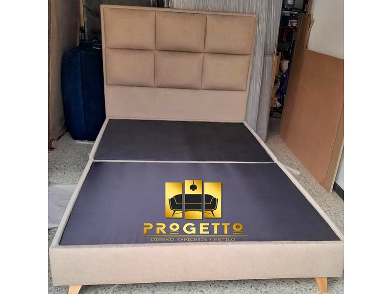 Base cama con cabecero chocolatina, fabricado en madera sajo con una estructura reforzada.