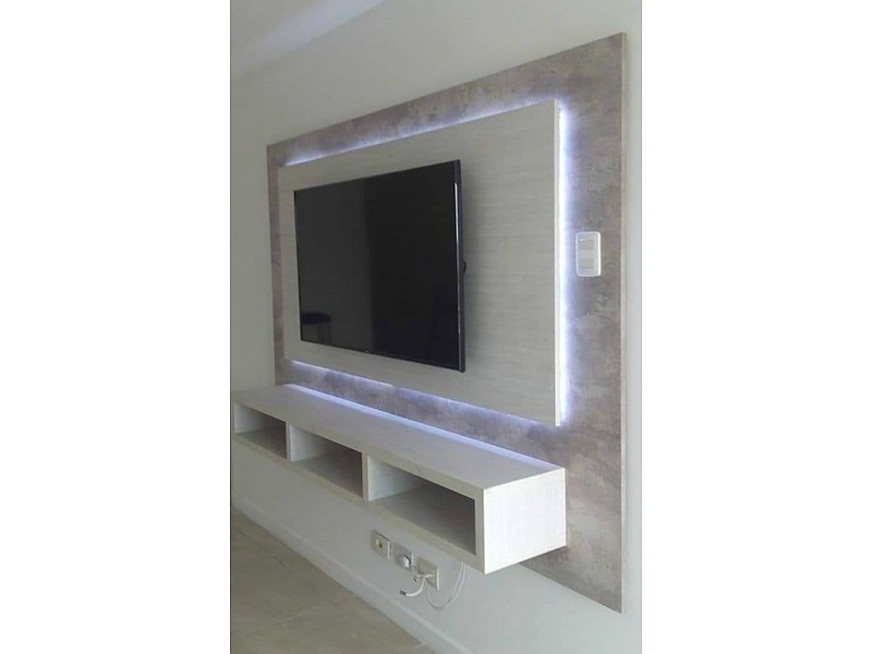 Centro de entretenimiento flotante color blanco.