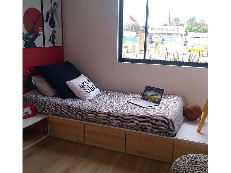 Cama funcional de una plaza con cuatro cajones.