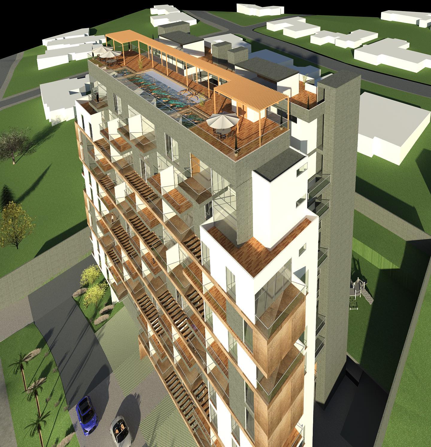 Un edificio moderno de varias plantas con una fachada versátil y funcional, diseñado para adaptarse a diversas necesidades urbanas. Su estructura optimiza el espacio y la luz natural, creando un ambiente eficiente y agradable.