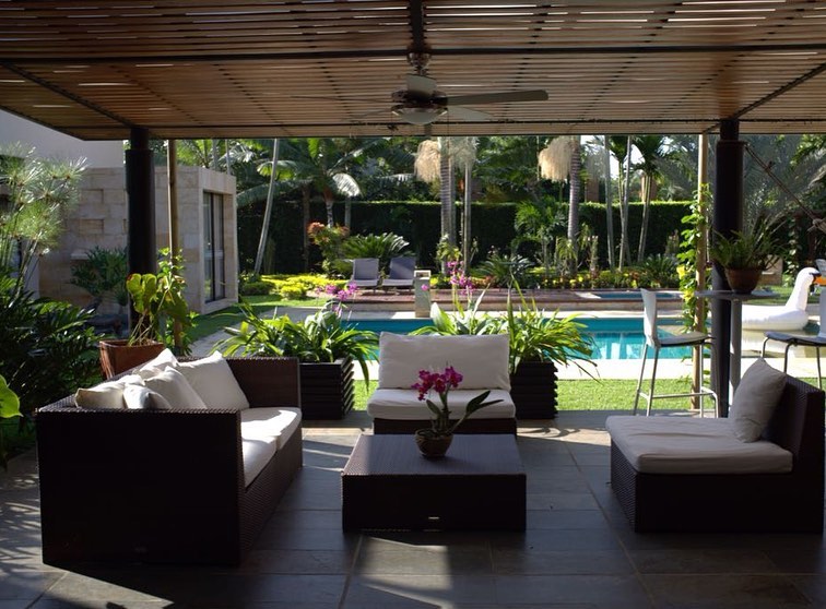 Un patio social techado junto a la piscina ofrece un espacio cómodo y protegido para reuniones y actividades, con áreas de descanso y comedor integradas que permiten disfrutar del entorno exterior sin preocuparse por el clima.