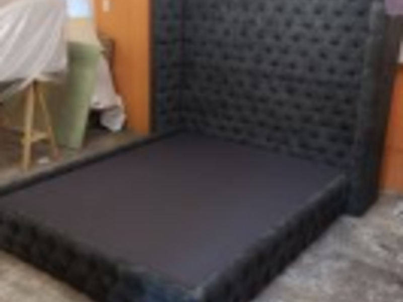 Estructura de cama con un diseño moderno y minimalista. Puede ser de madera, metal o una combinación de ambos, con líneas limpias y contemporáneas.