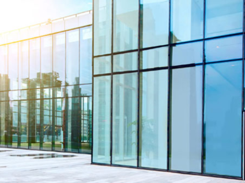 Características: Grandes superficies de vidrio enmarcadas en aluminio para crear fachadas transparentes y modernas.