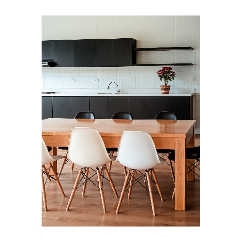 Juego de comedor de comedor, mesa y sillas, mesa elaborada en madera, sillas de plástico y madera