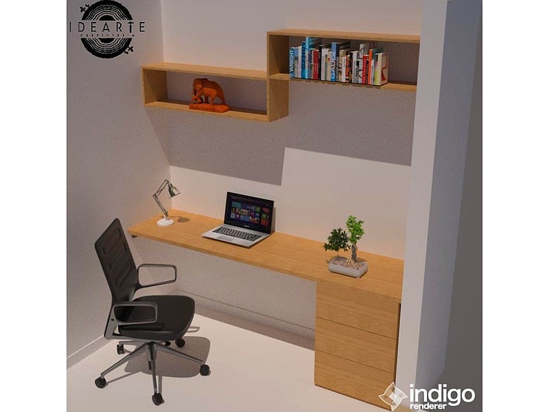 Escritorio de pared con cajones laterales para la oficina en casa.
