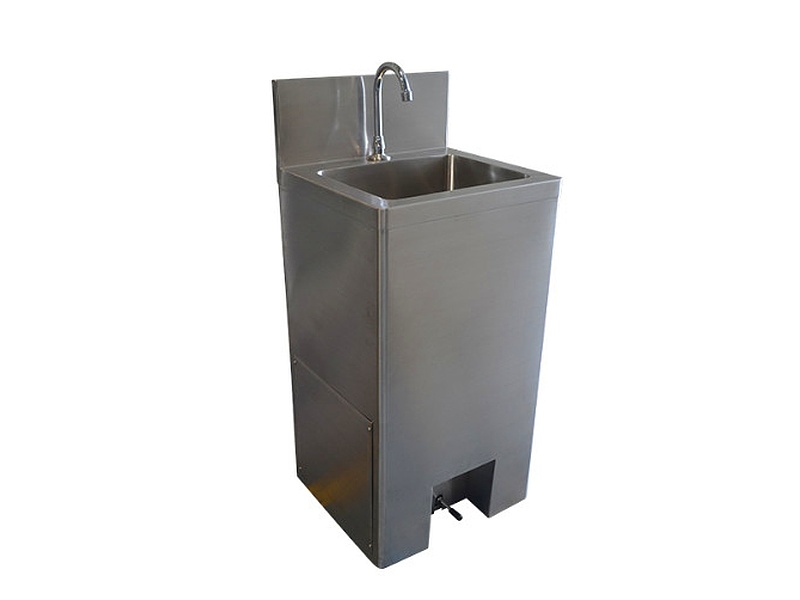 Este lavamanos de pedestal presenta medidas generales de 50 cm de frente, 45 cm de fondo y 90 cm de altura, con un salpicadero de 20 cm. El pozuelo mide 40 x 30 x 15 cm de profundidad y cuenta con un faldón de 90 cm. Incluye una válvula tipo push que se puede accionar con la rodilla o el pie, según la preferencia del usuario. Además, dispone de un cuello de ganso y un drenaje con canastilla para una mayor comodidad y funcionalidad.