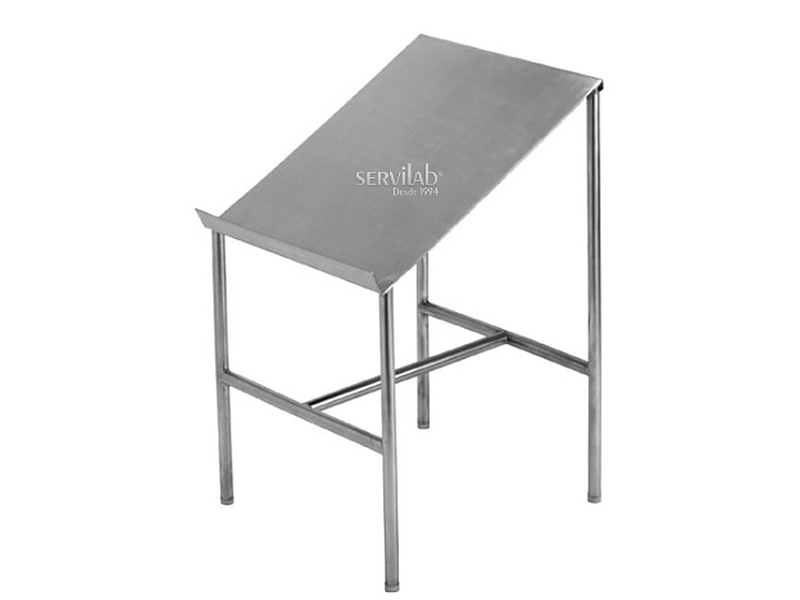 Esta mesa inclinada está construida en acero inoxidable tipo 304, garantizando durabilidad y resistencia. Sus dimensiones generales son de 50 x 50 cm, con una altura ajustable que varía entre 45 y 70 cm. Incluye una pestaña de 5 cm y está hecha con lámina de calibre 18. La base es de tubo de 1″ y cuenta con niveladores encauchetados para estabilidad. Su pulido y acabado satinado cumplen con las normas INVIMA y BPM.