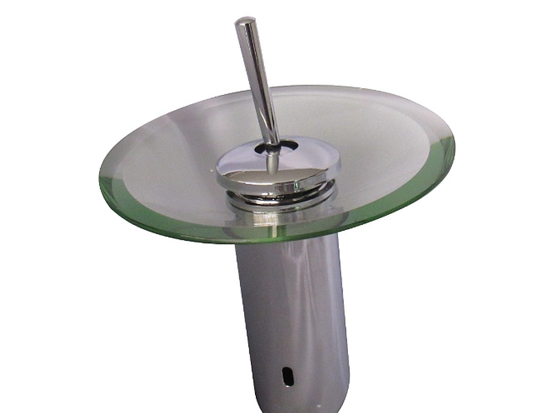 La grifería CASCADA BAJA EN VIDRIO TRANSPARENTE Y METAL da un lindo efecto al agua al caer.