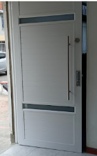 Puerta de aluminio con paneles de vidrio amplio, que permite la entrada de luz natural y crea una conexión armoniosa entre el interior y el exterior. Perfecta para patios y terrazas.