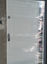 Puerta de aluminio ecológica que proporciona eficiencia energética y aislamiento térmico. Su construcción robusta y diseño estilizado la hacen ideal para hogares sostenibles y modernos.