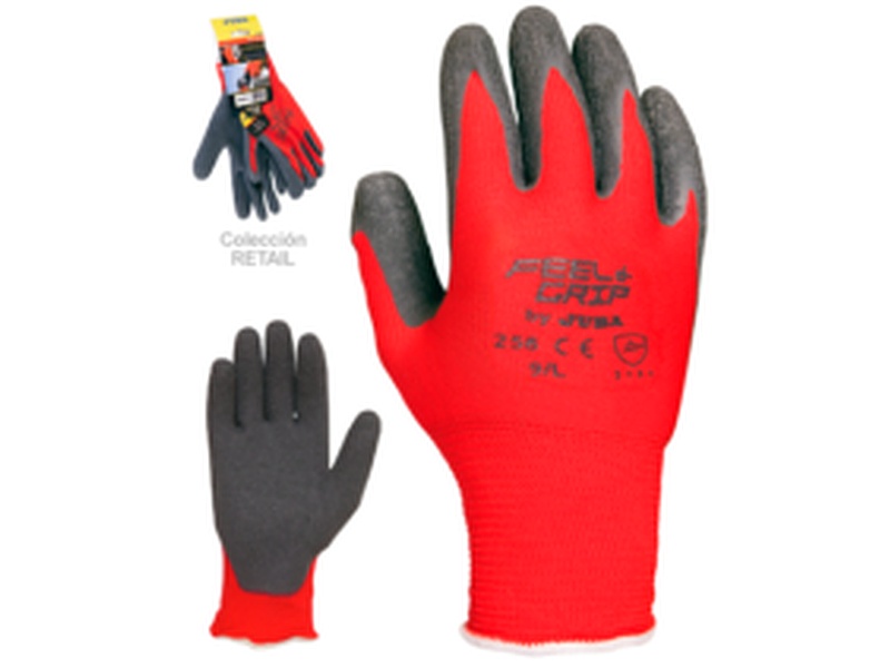 Guante Nylon+Latex rugoso especial para trabajo con Cuerda Bricolaje. Jardín. Montadores. Fontanería. Industria general. Guantes con tratamiento Actifresh® que evita malos olores y elimina las bacterias producidas por el sudor y tratamiento Sanitized® que evita la irritación de la piel. CUMPLE NORMA EN 388 MARCA JUBA Fabricación Española