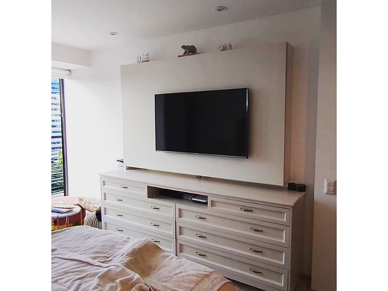 Lindo bife organizador y mueble para tv con compartimentos. Tiene un toque neoclasico que nos da las molduras y manijas que lo hacen muy especial.