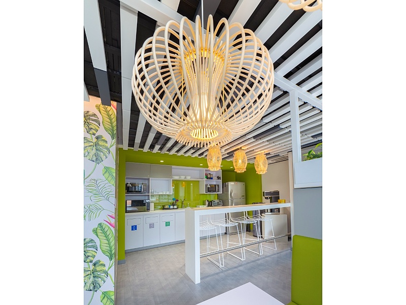 La tendencia "Entorno doméstico" es más importante que nunca en este momento. Aumente la luz natural y agregue plantas de interior a su espacio de trabajo para implementar el diseño híbrido de vida y trabajo.