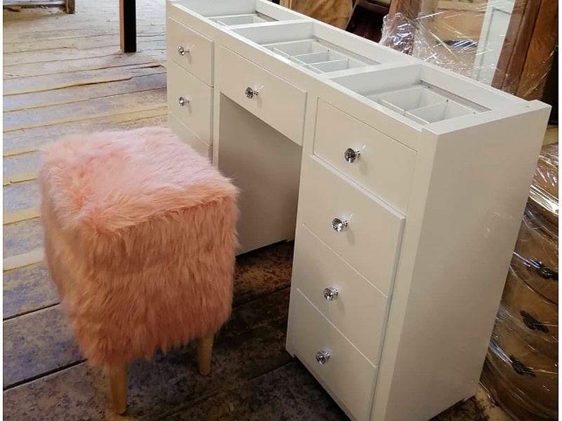 El tocador en tono blanco es una pieza indispensable para cualquier dormitorio elegante. Con un diseño limpio y detalles minimalistas.