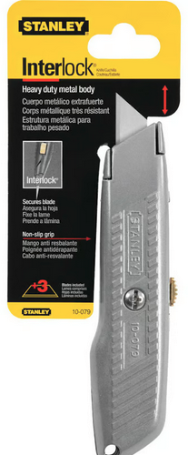 Mecanismo patentado de nariz superpuesta mantiene segura la hoja en su posición. Tres posiciones de corte. Mango contorneado con estriado anti-deslizante. Compartimiento para almacenamiento de hojas en el mango. Disponible en color para fácil localización en la cajade herramientas o en el área de trabajo.