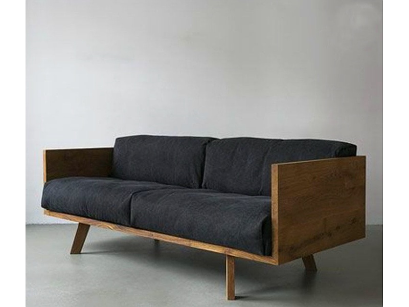 Sofá de dos plazas color negro con madera.
