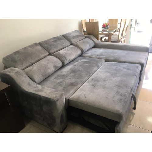Sofá cama de 2 1/2 plazas, sofá cama de color gris con tela tipo piel de durazno