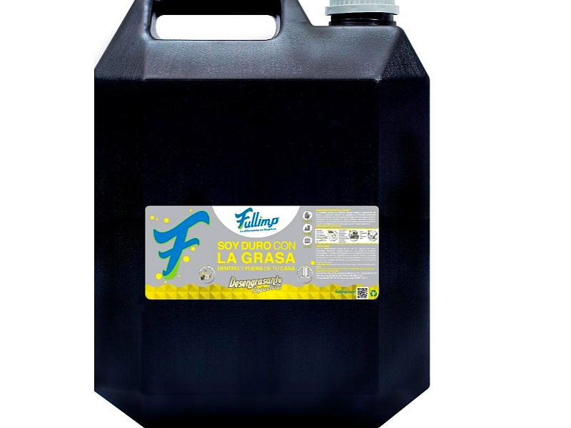 Desengrasante industrial fullimp. Su novedosa fórmula no corrosiva, permite remover rápidamente las grasas y suciedades dejando las superficies y artefactos totalmente limpios.
