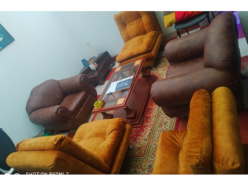 Combinación perfecta de calidez y estilo moderno. Su tapizado en chocolate ofrece una base acogedora, mientras que los acentos en mostaza añaden un toque vibrante y contemporáneo.