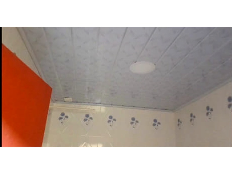 Diseño: El techo presenta un diseño acanalado o ranurado, lo que añade textura y dimensión a la superficie. Además, se puede apreciar un patrón floral sutil en el material, lo que le da un toque decorativo.