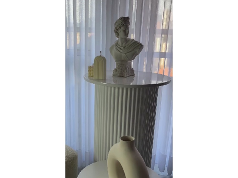 Mesa auxiliar de forma cilíndrica con tapa de mármol.