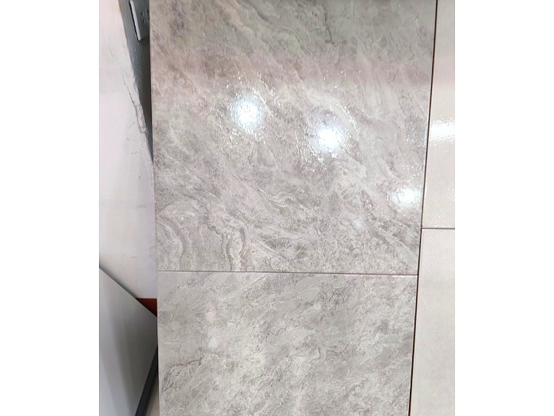 Cerámica con acabado gris imitación mármol, que ofrece una apariencia elegante y sofisticada. Ideal para suelos y paredes, proporciona un toque de lujo con su diseño de vetas sutiles.
