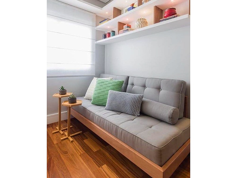 Sofá Largo de tres piezas. Nos encanta transformar espacios a través del diseño y la producción de mobiliario... en esta imagen nos admiramos el estudio, pequeño pero hermoso, y más que eso, funcional