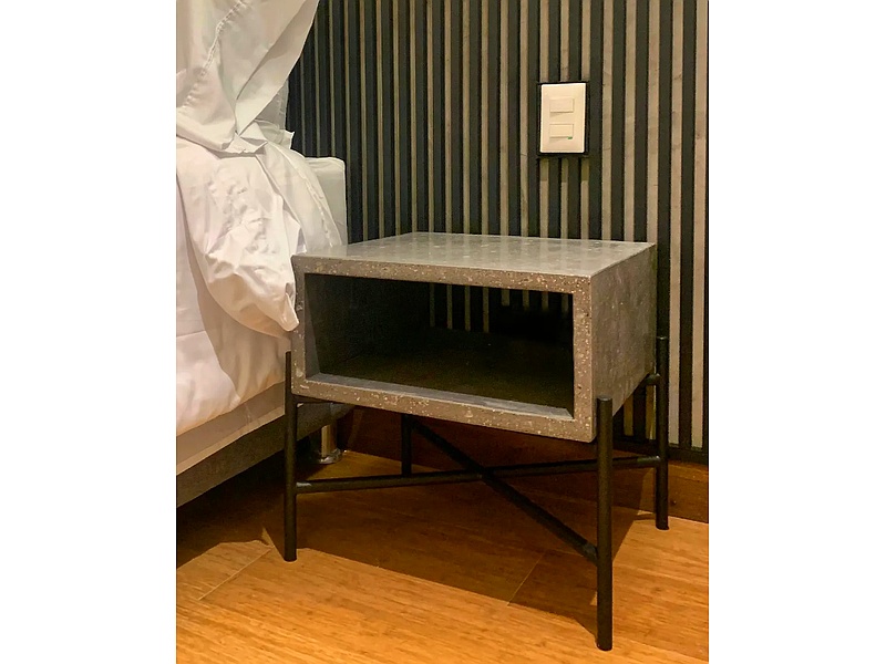 Mesitas de noche. Concreto pulido tres taller gris sobre base de metal con pintura electrostática negro mate
