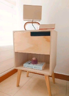 Una mesita de noche de madera es un mueble funcional y estilizado, ideal para colocar junto a la cama. Generalmente incluye uno o más cajones para almacenamiento de artículos personales y una superficie superior para lámparas, relojes o libros. La madera aporta calidez y durabilidad, y su diseño puede variar desde rústico hasta moderno, adaptándose a diferentes estilos de decoración.