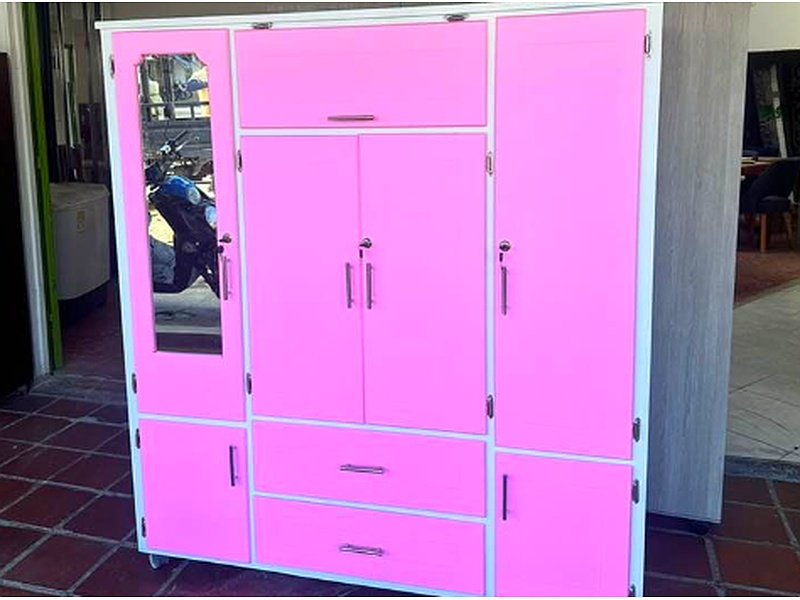 Este armario es la solución perfecta para quienes buscan un espacio adicional de almacenamiento sin sacrificar estilo. Con puertas de paneles lisos y tiradores discretos, su diseño elegante se integra fácilmente en cualquier dormitorio.