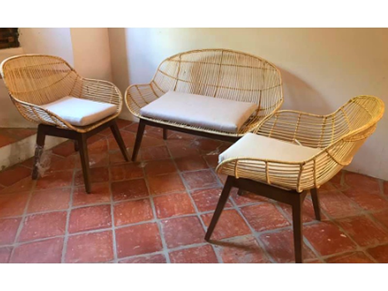 Conjunto de sillas perfecto para crear un ambiente acogedor y relajante en cualquier espacio. Su diseño elegante y natural lo hace ideal para interiores y exteriores.