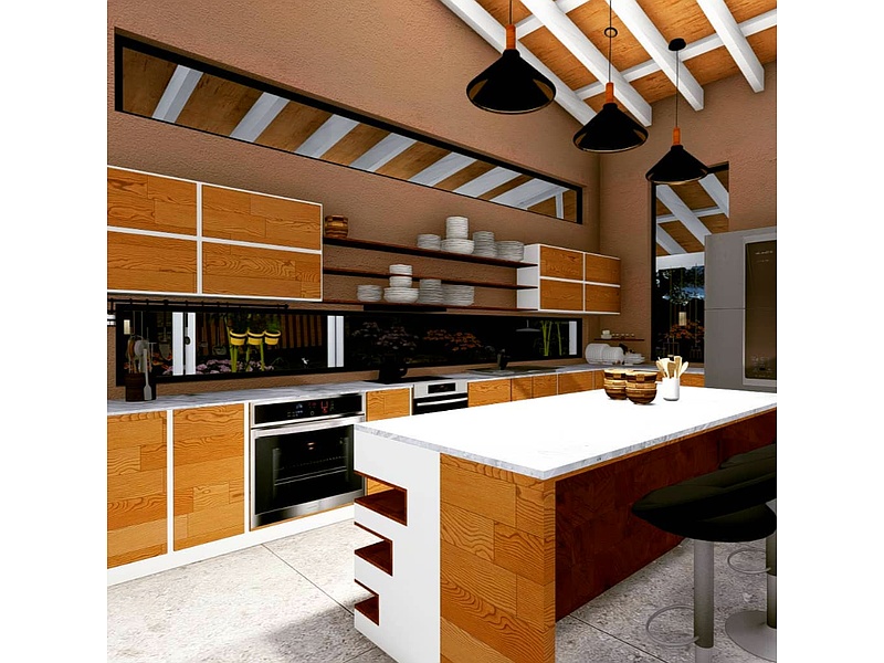 El diseño de cocina en galería, ofrecido como servicio, es perfecto para espacios pequeños, optimizando el área de trabajo con una disposición estrecha y alargada. Este diseño permite un flujo de trabajo eficiente, con todos los elementos al alcance, sin sacrificar funcionalidad.