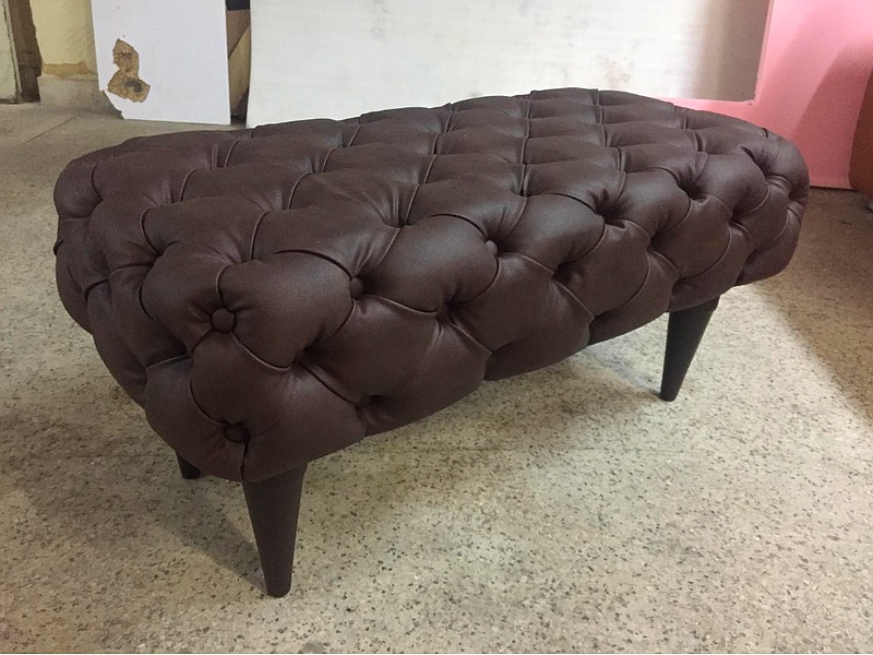 Puff chester con tapizado de puntos color marrón para sala de estar