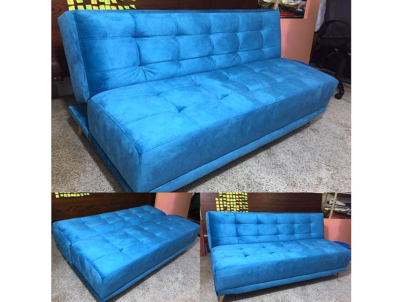 Sofá cama color celeste.