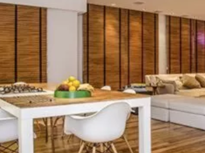 Estas persianas están hechas de láminas de madera y agregan calidez y textura a un espacio.
