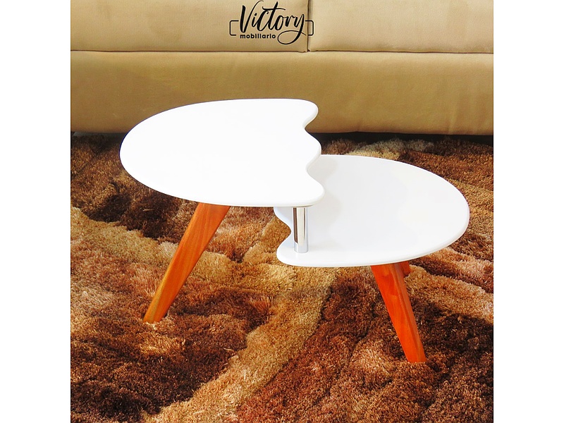 Mesa de centro color blanco con dos niveles.