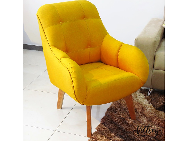 Sillón mostaza, tapizado de puntos para sala de estar.