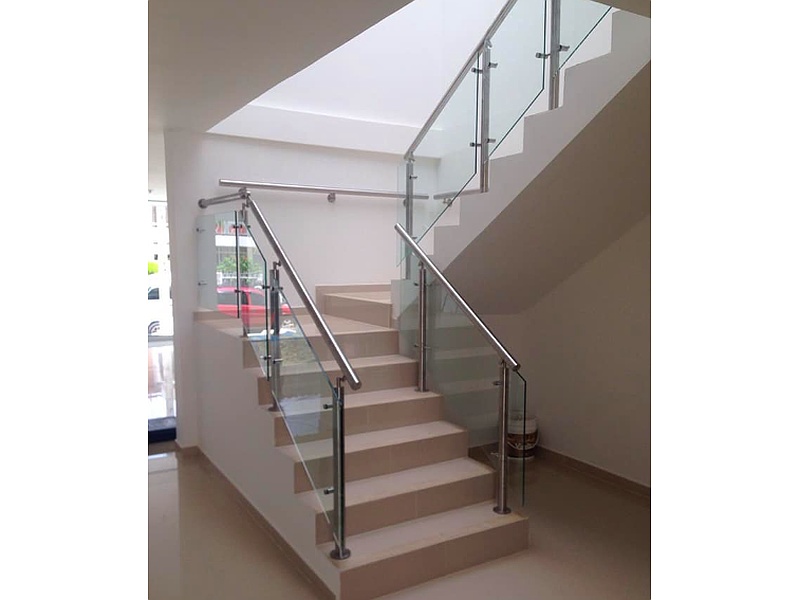 Pasamanos para escaleras con vidrio templado, barandilla y accesorios en acero inoxidable.