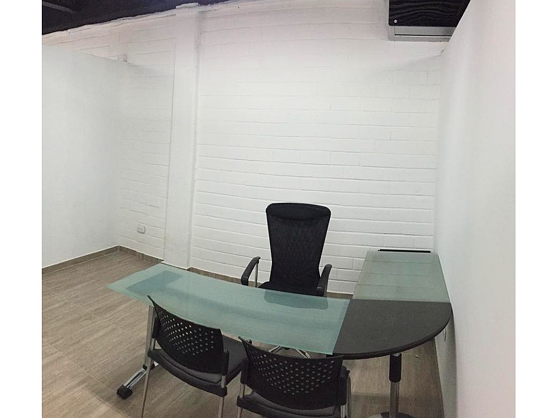 Escritorio en forma de L de vidrio para oficinas.